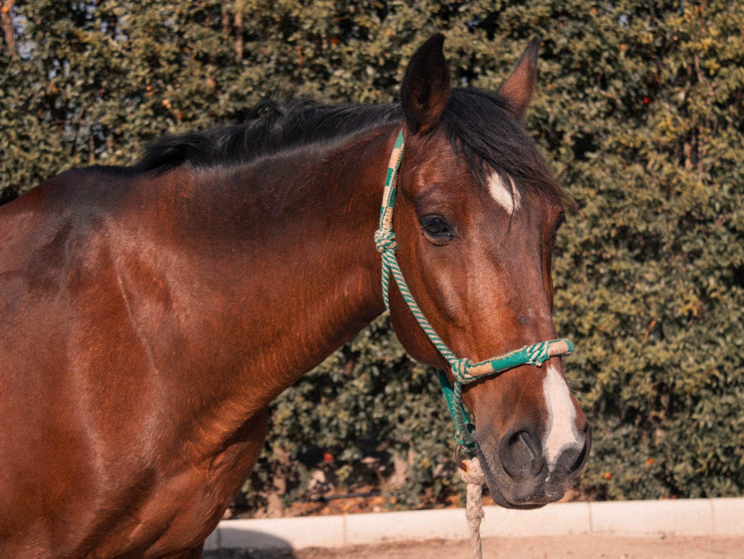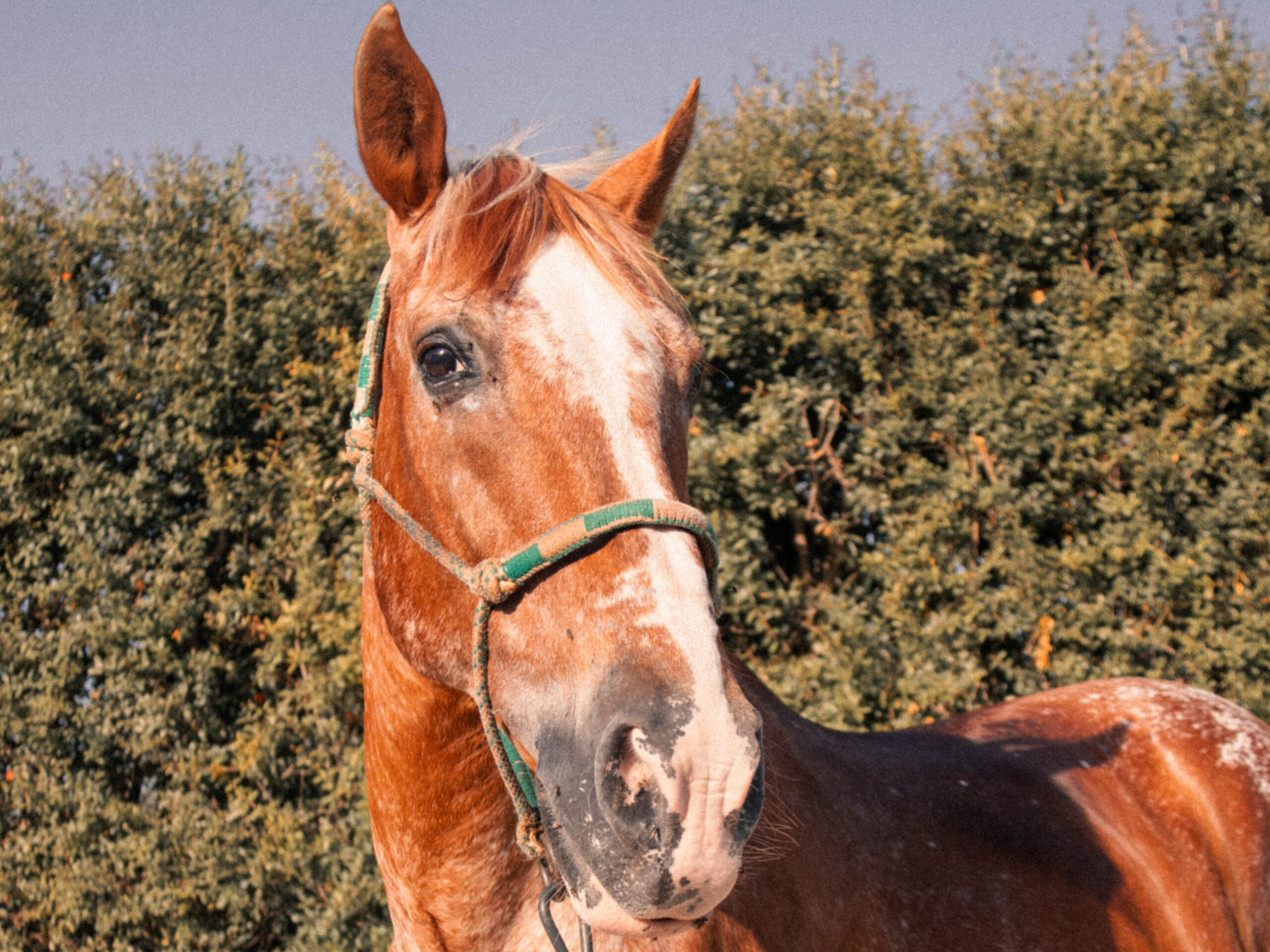DUQUE tiene x años y es el caballo más juguetón del centro. Su pelaje castaño lo hace elegante y fuerte, aunque lo que más lo caracteriza es la mancha blanca en su hocico que lo hace inconfundible. Le encanta salir al campo a disfrutar de la naturaleza y, al igual que Fuego también acompaña tanto en las terapias como en las clases de equitación. Siempre está listo para pasarlo bien y compartir su alegría y ganas de jugar