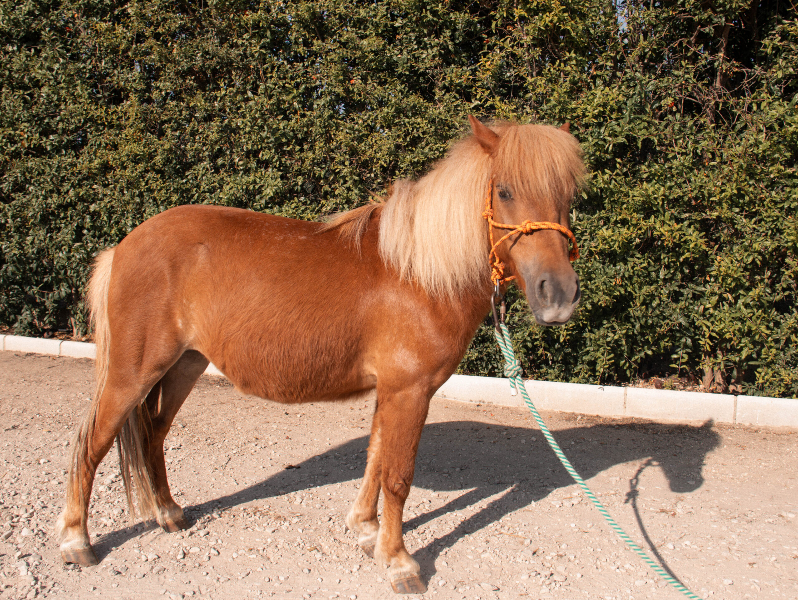 Lina, que tiene X años, lleva con nosotros menos tiempo, tan solo un añito. Es la única poni alazana, por lo que los más pequeños la diferencian con mucha facilidad.