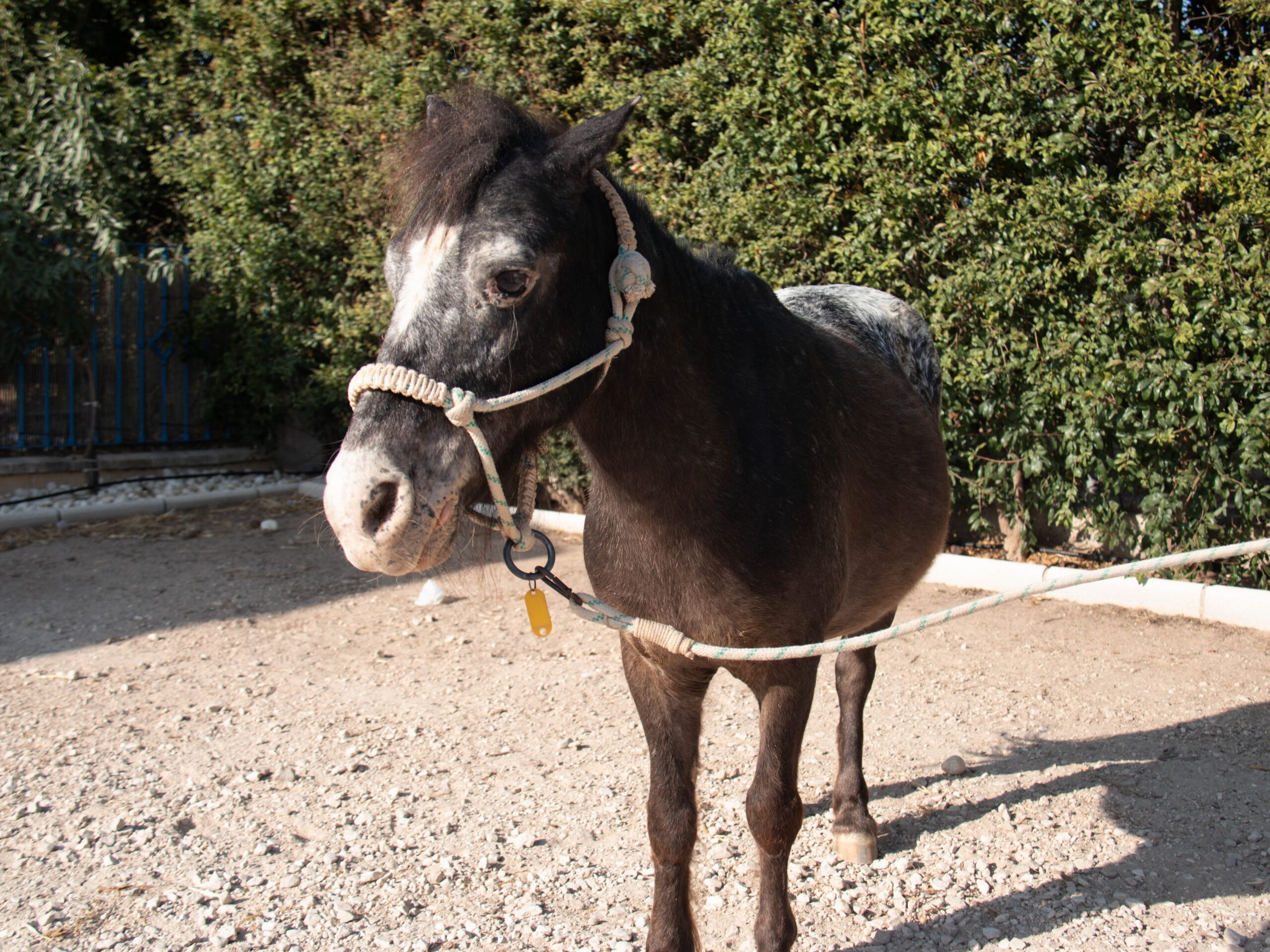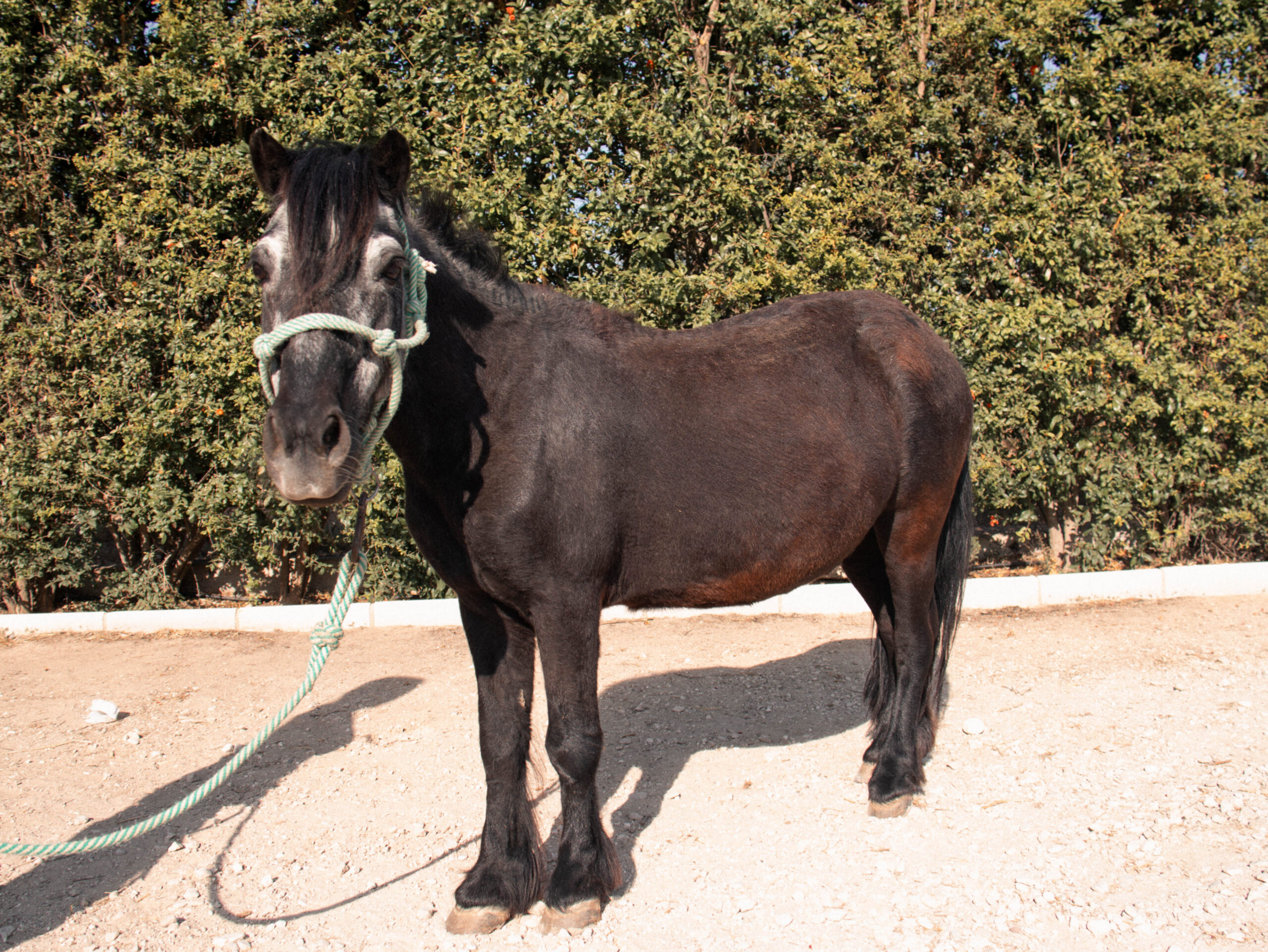 Zafira tiene X años y lleva con nosotros desde X. Es una de las ponis preferidas por nuestros pequeños. Su color oscuro la caracteriza y hace que se diferencie fácilmente de los demás. Además es muy simpática y su paso alegre pero seguro hace que los pequeños se sientan muy a gusto con ella tanto en sus clases de equitación como en las terapias.